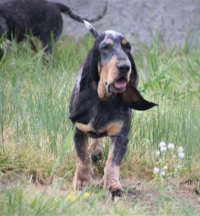 Sujet très typé . excellent crane , l'oeil pourrait être légèrement plus foncé , excellente oreille, excellente carure de babines , excellente ligne de dessus / dessous , excellent aplombs