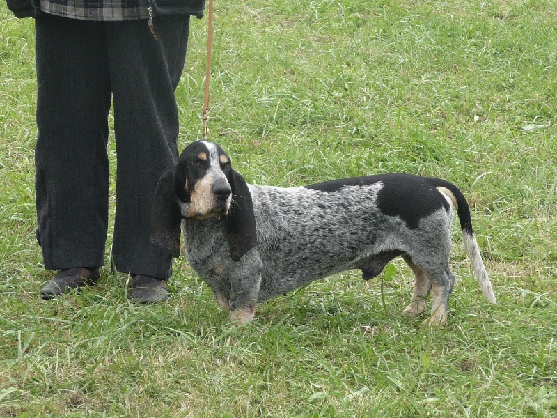 Bonne figure evec une bonne tête, bonnne sortie d'encolure, exc corps de basset, le fouet n'est pas parfait, bon dessus en statique, bonne présentation