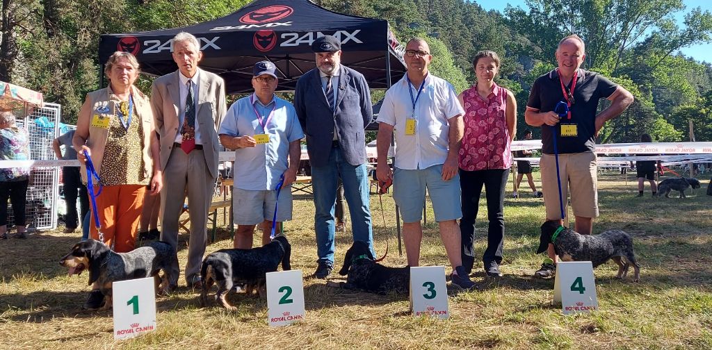 Jolie chienne avec une excellente construction d'ensemble, excellents membres , excellentes ligne de dos , excellent fouet excellent tête et oreille typées avec un remarquable rapport crane chanfrein. excellent fanon , excellente carrure de babines excellentes présentation